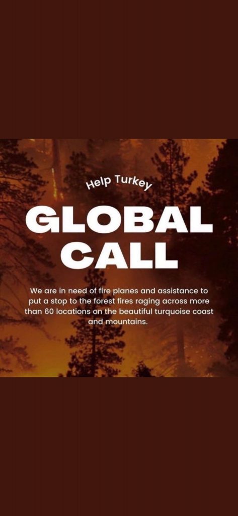 Seit dem 28. Juli waren in der Türkei mehr als 200 Feuer ausgebrochen, darunter 16 große Waldbrände. In Antalya und Muǧla, in Burdur, Denizli und viele anderen Provinzen – genaugenommen sind in mehr als die Hälfte der insgesamt 81 Provinzen Feuer ausgebrochen – scheinen die Brände bewältigt worden zu sein – doch die Zerstörungen sind immens. Über 100.000 ha Wald, darin Millionen von Lebewesen, sind in zwei Wochen abgebrannt, ganze Biotope vernichtet worden.